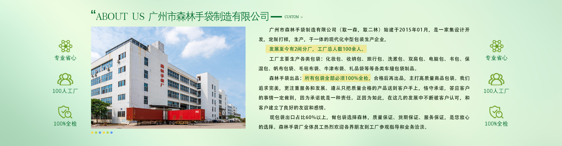所有包袋100%全檢,質量得到國內外客戶的一致好評,