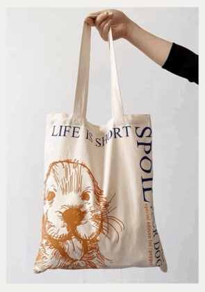 手繪狗狗帆布包讓人眼前一亮,布袋上的小金毛圖案,趣味感十足,俏皮又可愛!愛狗人士完全沒有辦法拒絕~