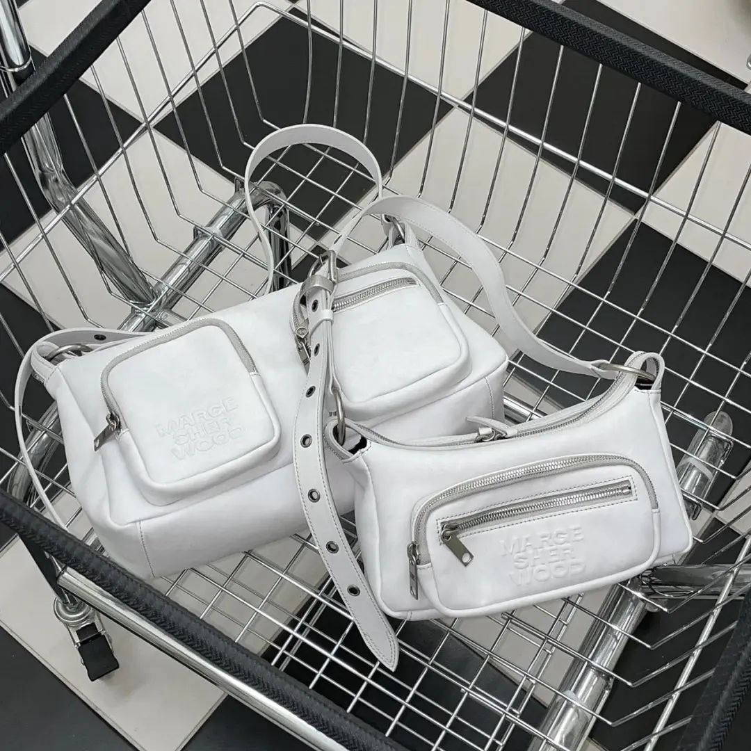 在新品肩包設計中加入工裝口袋,展現兼顧機能風和高級感的美學,致敬Y2K千禧年格調,反映純粹實用風和拾荒再創主題。