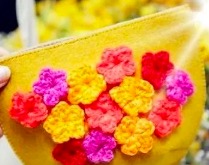 用鮮黃色毛氈紙制作成的萬能實用布藝小化妝包,搭配上五顏六色的針織有愛小花朵,色彩繽紛又顯得嬌俏可愛。如何你也喜歡那就來一起DIY化妝包吧!