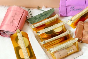 另外兩個小包就可以裝護膚品,彩妝,這樣一家子的東西都搞定啦——
