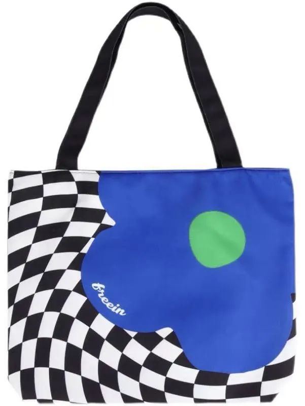 喜歡棋盤格又擔心hold不住的妹子可以選這個帆布包,加上大花朵拼接,非常有個性。