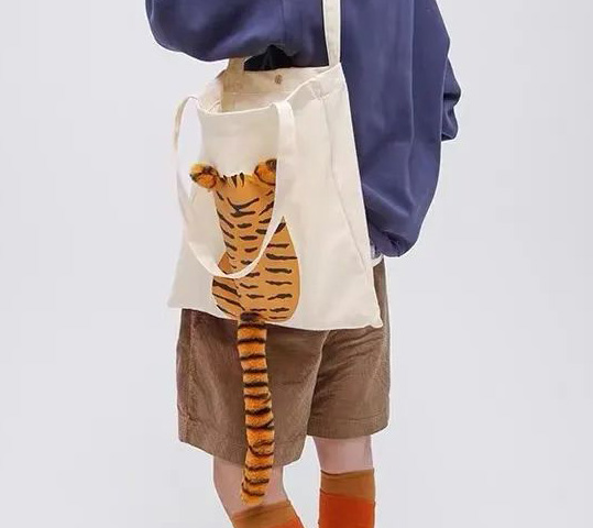 第一眼就被小老虎帆布包吸引,毛茸茸的尾巴特別逼真,它是立體的哦!耳朵也是立體的,背出去撞包幾率非常低。