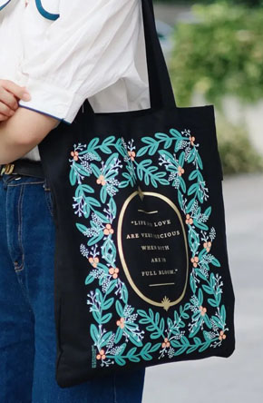 這款帆布包的設計來源:取自《小婦人》書封里的企鵝繁花系列。