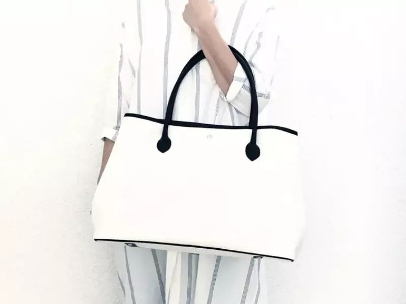 像是這款經典黑白配色的大容量寬版帆布袋,看起來優雅又慵懶,突顯了帆布休閑的氣息,但又看起來不隨便,在側邊開口處還設計有扣子,可以隨心所欲改變袋子的形狀,非常好看~